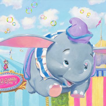 Our favorite elephant, "Dumbo" rising up and up and up as Timothy Q. Mouse encourages him to "Believe and Soar"